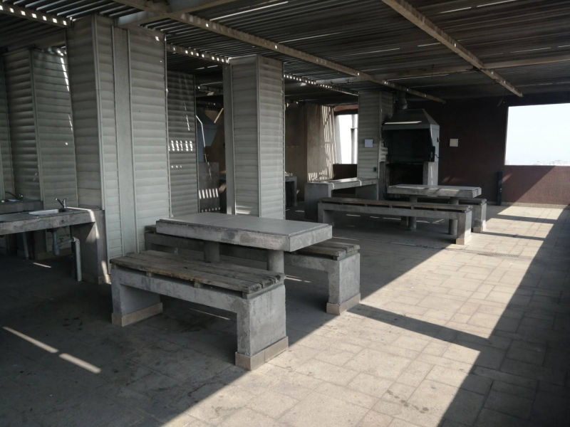 Posee conserjería 24 horas, piscina con vista panorámica, gimnasio, quincho, sala de lavadoras y secadoras y bicicletero.